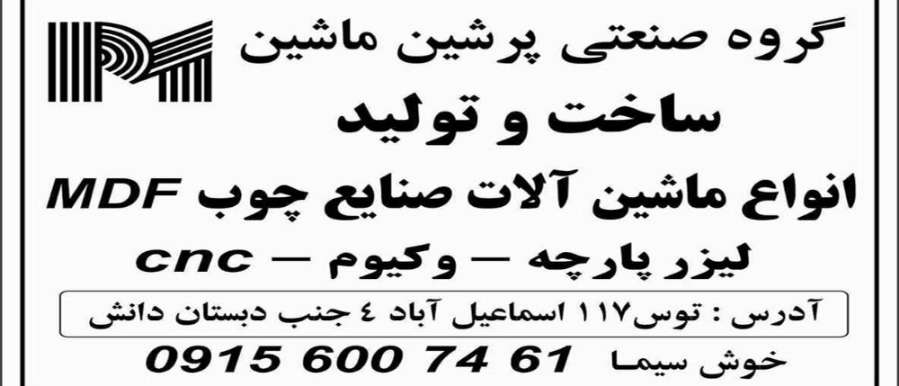 پرشین ماشین تولید کننده انواع ماشین آلات صنایع چوب و مبلمان، انواع دستگاه های سی ان سی ، وکیوم ، برش ، لبه چسبان و کات در مشهد به شما همشهریان عزیز خدمات ارائه می دهد.