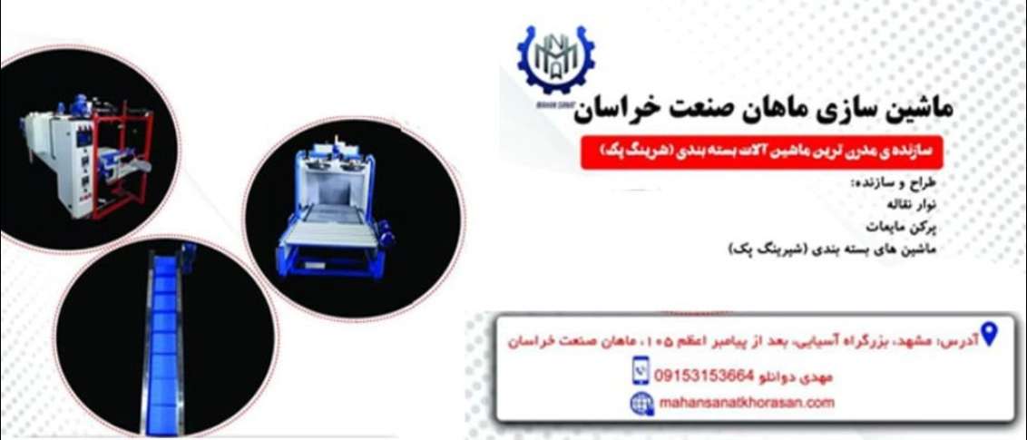 ماشین سازی ماهان صنعت خراسان، در زمینه نصب و راه اندازی دستگاه بسته بندی لفاف کشی با پلاستیک دستگاه شرینک پک، ماشین آلات بسته بندی دستگاه شیلنگ، پر کن مایعات نوار نقاله دستگاه شیل در مشهد فعالیت دارد.
