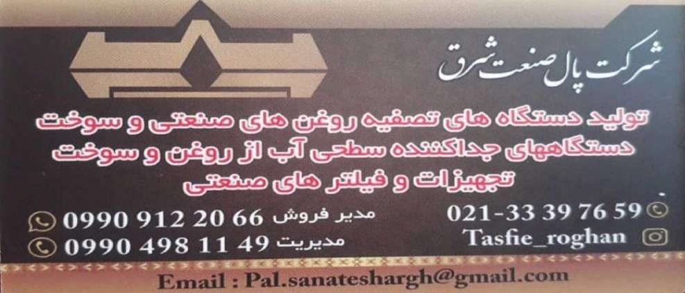 تولید دستگاه تصفیه روغن و گازوئیل پال صنعت شرق در شهرری تهران