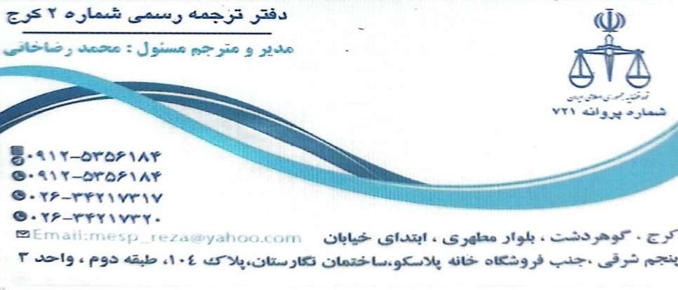 دفتر ترجمه شماره دو کرج محمد رضاخانی