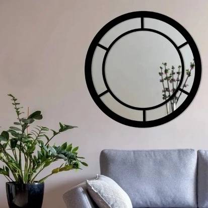 آینه گرد چوبی تبسم قطر 70 (با احتساب قاب) یک محصول با کیفیت با طراحی منحصر به فرد به همراه آینه سوپر کلیر تولید و مونتاژ می شود. این محصول تولید شده از 3 ورق mdf وارداتی با روکش ملامینه چوب (ضد آب) می باشد که پشت آن به طورکامل با ام دی اف کاور شده است ضمنا آینه بین این 3 ورق ام دی اف پرس شده است . پشت آن حفره ای مثلثی شکل تعبیه شده که نصب آینه را به کمک فقط یک میخ آسان می کند. سطح آینه آن شفاف و بدون موج می باشد. از این محصول می توان برای زیبایی دکوراسیون داخلی خانه، محل کار، میز آرایش، جاکفشی، همچنین دیوارهای پشت مبل و ... استفاده نمود. با توجه به اینکه روکش آن ملامینه و ضد آب می باشد از آن می توان در سرویس های بهداشتی هم استفاده نمود.